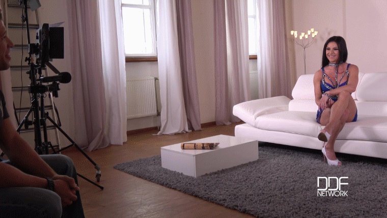 Грудастая брюнетка на кастинге, дает интервью режиссеру и мастурбирует перед камерой
